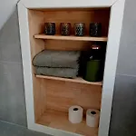 Bland bekvämligheter i badrummet finns badlakan och handdukar, samt en separat toalett och en dusch.